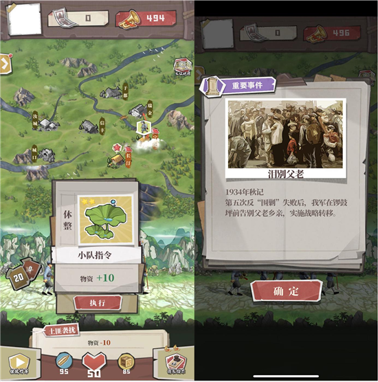 《前进之路》为玩家提供了更具沉浸感和互动性的体验,是一段可以“亲身经历”的长征之旅。在游戏中,玩家将扮演长征大部队中的班长,率领自己的队伍不断前进。在前行的路途中,玩家需要通过合理地组织团队、统筹资源、规划路线来帮助红军战士们克服各种危机和挑战,跟随党中央的指挥,夺取长征胜利。