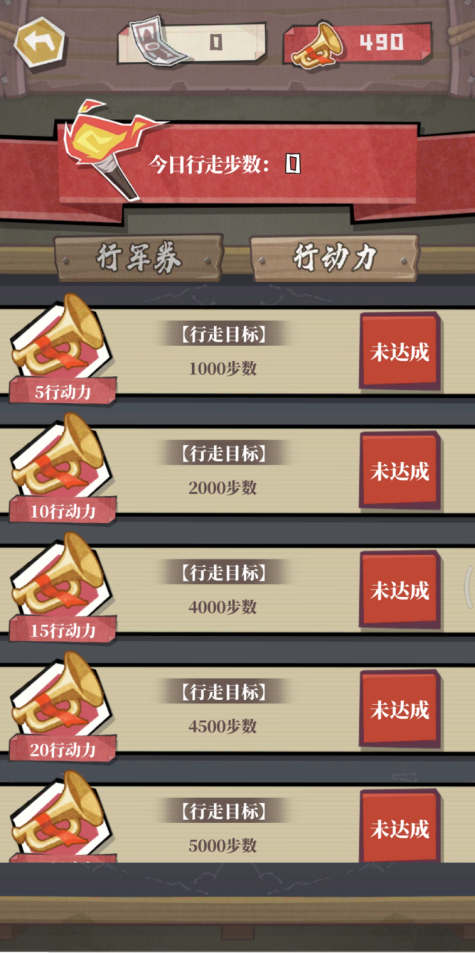 除此以外,《前进之路》还推出了富有特色的“线下计步”玩法。游戏将记录玩家在现实中行走的步数,并提供行军券、行动力两种游戏资源作为可用步数兑换的奖励,从而鼓励玩家在现实生活中走出家门、强身健体,体会长征历史和当下生活的紧密联系。